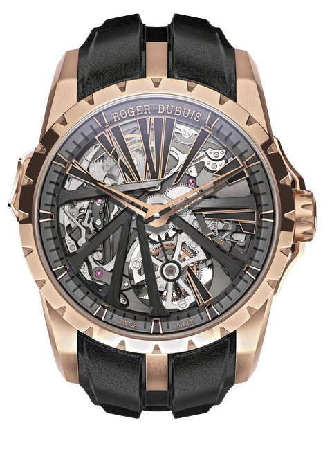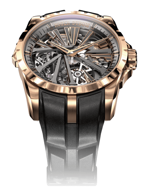 玫瑰金表壳,搭配覆有防眩涂层的蓝宝石水晶玻璃 玫瑰金透视表背,搭配蓝宝石水晶玻璃