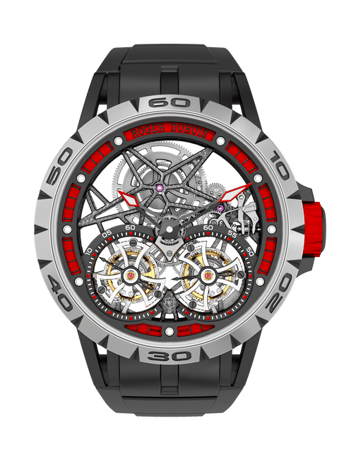 - 镂空双飞行陀飞轮是体现Roger Dubuis罗杰杜彼高级制表精湛技艺的标志性装置