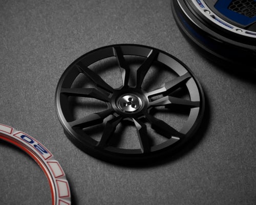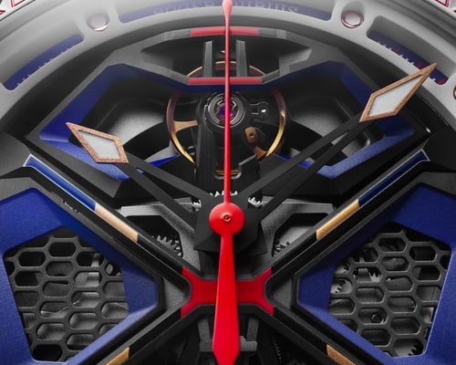 RD630机芯的设计灵感来自汽车世界,是特别为与Lamborghini Squadra Corse兰博基尼赛事运动部的合作所研发出的超卓机芯。 此机芯配备双发条盒,可提供高达60小时的动力储存。 此机芯设计犹如超级跑车引擎,搭配“引擎室拉杆”装饰,形成显著的视觉标志。 摆陀的造型设计效仿超级跑车的轮辋。