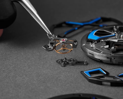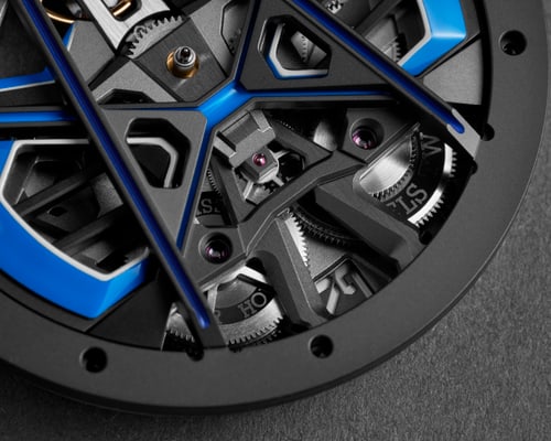 RD630机芯的设计灵感来自汽车世界,是特别为与Lamborghini Squadra Corse兰博基尼赛事运动部的合作所研发出的超卓机芯。 此机芯配备双发条盒,可提供高达60小时的动力储存。 此机芯设计犹如超级跑车引擎,搭配“引擎室拉杆”装饰,形成显著的视觉标志。 摆陀的造型设计效仿超级跑车的轮辋。