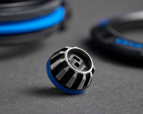 蓝色下层盘缘,搭配转印字样和分钟圈;黑色上层盘缘,搭配填充SLN夜光涂料的镀铑螺丝式时标。