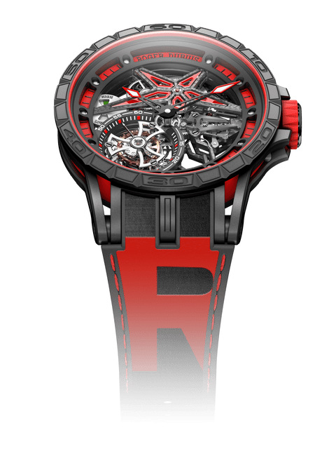 Roger Dubuis罗杰杜彼和Pirelli倍耐力携手合作,打造出以获胜赛车轮胎橡胶制成的独创表带。此表带嵌衬曾在世界最严格的赛事中赢得胜利的真正轮胎橡胶。此外,表带背面饰有Pirelli倍耐力图标,象征此意大利制造商的独特风格与卓越性能。此表款运用高竞争性技术,结合Roger Dubuis罗杰杜彼机芯和Pirelli倍耐力风采,完美展现赛车激情。