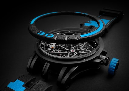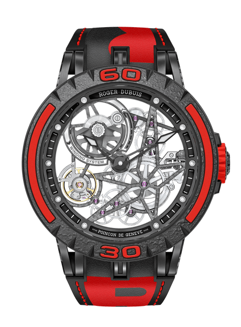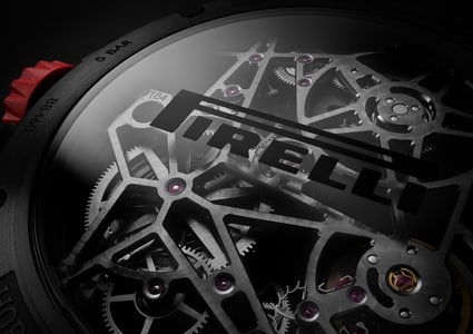 Roger Dubuis罗杰杜彼和Pirelli倍耐力携手合作,打造出以获胜赛车轮胎橡胶制成的独创表带。此表带嵌衬曾在世界最严格的赛事中赢得胜利的真正轮胎橡胶。此外,表带背面饰有Pirelli倍耐力图标,象征此意大利制造商的独特风格与卓越性能。此表款运用高竞争性技术,结合Roger Dubuis罗杰杜彼机芯和Pirelli倍耐力风采,完美展现赛车激情。
