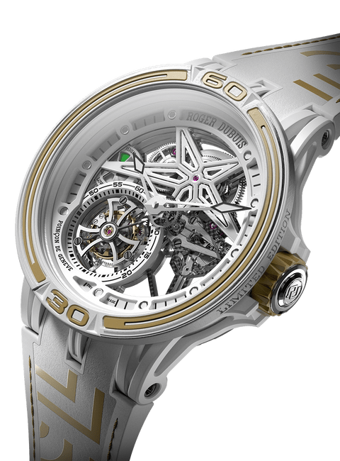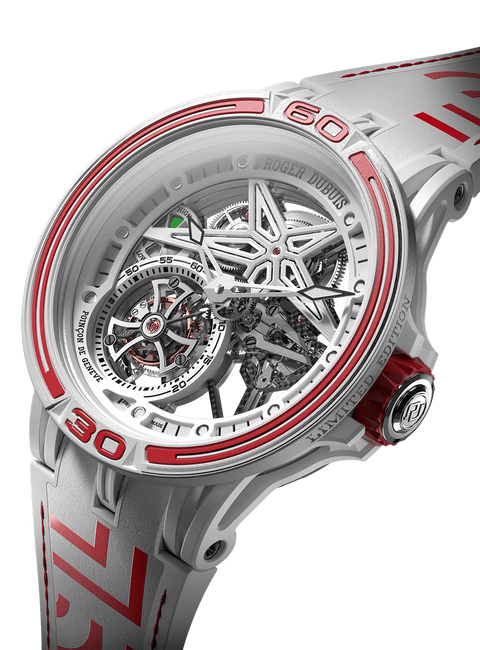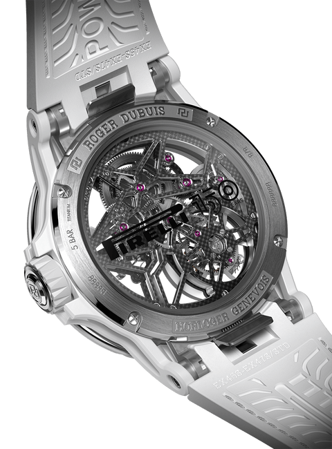 Roger Dubuis罗杰杜彼和Pirelli倍耐力携手合作,打造出以获胜赛车轮胎橡胶制成的独创表带。此表带嵌衬曾在世界最严格的赛事中赢得胜利的真正轮胎橡胶。此外,表带背面饰有Pirelli倍耐力图标,象征此意大利制造商的独特风格与卓越性能。此表款运用高竞争性技术,结合Roger Dubuis罗杰杜彼机芯和Pirelli倍耐力风采,完美展现赛车激情。