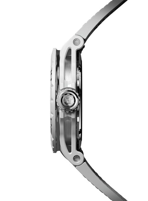 白色MCF(矿物复合纤维材质)表壳 ,配搭钛合金表环 白色MCF(矿物复合纤维材质)表圈,搭配覆有防眩涂层的蓝宝石水晶玻璃;配备快拆装置,易于迅速更换 钛合金透视表背,搭配蓝宝石水晶玻璃和金属镌刻Pirelli倍耐力标志 橡胶表冠,配备快拆装置,易于迅速更换