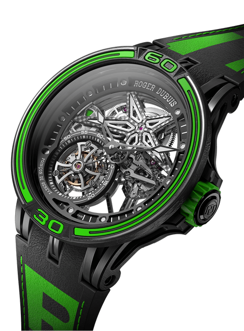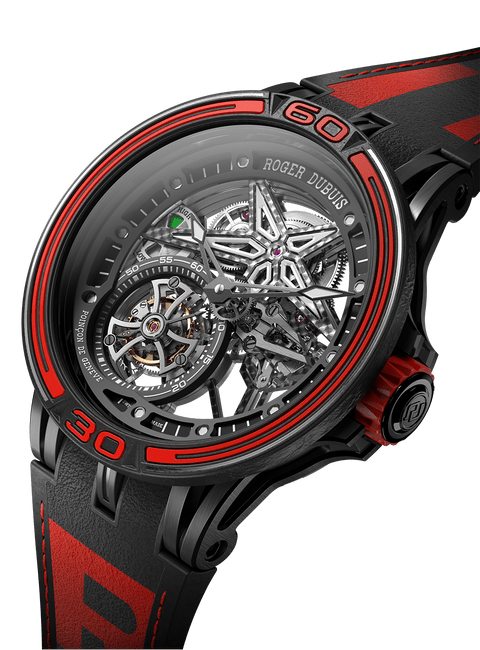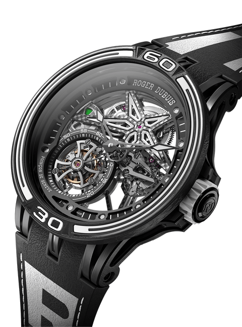 Roger Dubuis罗杰杜彼和Pirelli倍耐力携手合作,打造出以获胜赛车轮胎橡胶制成的独创表带。此表带嵌衬曾在世界最严格的赛事中赢得胜利的真正轮胎橡胶。此外,表带背面饰有Pirelli倍耐力图标,象征此意大利制造商的独特风格与卓越性能。此表款运用高竞争性技术,结合Roger Dubuis罗杰杜彼机芯和Pirelli倍耐力风采,完美展现赛车激情。