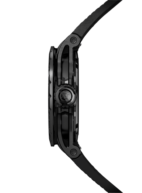 黑色DLC涂层钛合金表壳,搭配嵌衬橡胶的钛合金表环 黑色DLC涂层钛合金表圈,搭配覆有防眩涂层的蓝宝石水晶玻璃——配备快拆装置、易于迅速更换 黑色DLC涂层钛合金透视表背,搭配蓝宝石水晶玻璃和金属镌刻Pirelli倍耐力标志 橡胶表冠,搭配黑色DLC涂层钛合金冠盖——配备快拆装置、易于迅速更换