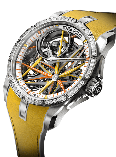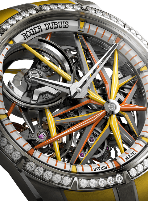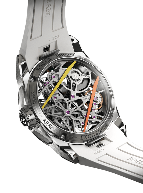 王者系列霓虹腕表受到艺术世界的启发,彰显了Roger Dubuis罗杰杜彼的创新能力。彩色的微型结构在机芯内展开,在白天像光线一般穿梭于繁复机械之间。此微型结构在紫外线照射下闪烁发光,犹如霓虹灯在双面雕塑中绽放光芒,展现出仅在特定环境下才能全面发挥的潜力。Roger Dubuis罗杰杜彼将艺术与创新融为一体,并称之为“艺术科技(Art Technologies)”,这使其日内瓦制表厂能够推出限量版的独创时计。此外,王者系列霓虹腕表也体现了Roger Dubuis在高级钟表世界的独创性设计以及其非凡的创作手法。