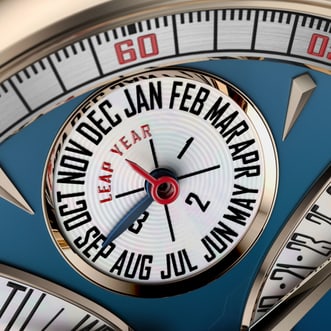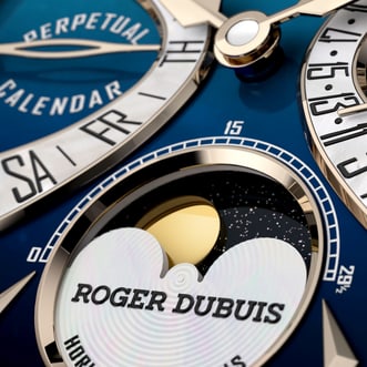 Hommage致敬系列双逆跳万年历腕表 La Placide搭载RD1472机芯,这枚经重新演绎的机芯既符合日内瓦印记的严苛标准,具备万年历与双逆跳显示功能,亦延续着罗杰·杜彼先生对制表的炽热情怀。