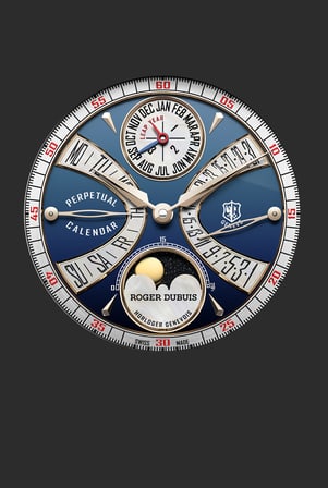 灵感源自日内瓦湖的潋滟波光,莱芒湖蓝色调映射罗杰·杜彼先生制表生涯的初曦。深邃漆面蓝调宛如邀请,引您开启穿越时空的旅程。