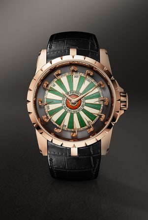 2011年推出的摩纳哥系列腕表,灵感源自那些敢于冒险的人,其设计充满迷人的轮盘美学,是罗杰杜彼唯一一款传统枕形表壳腕表。