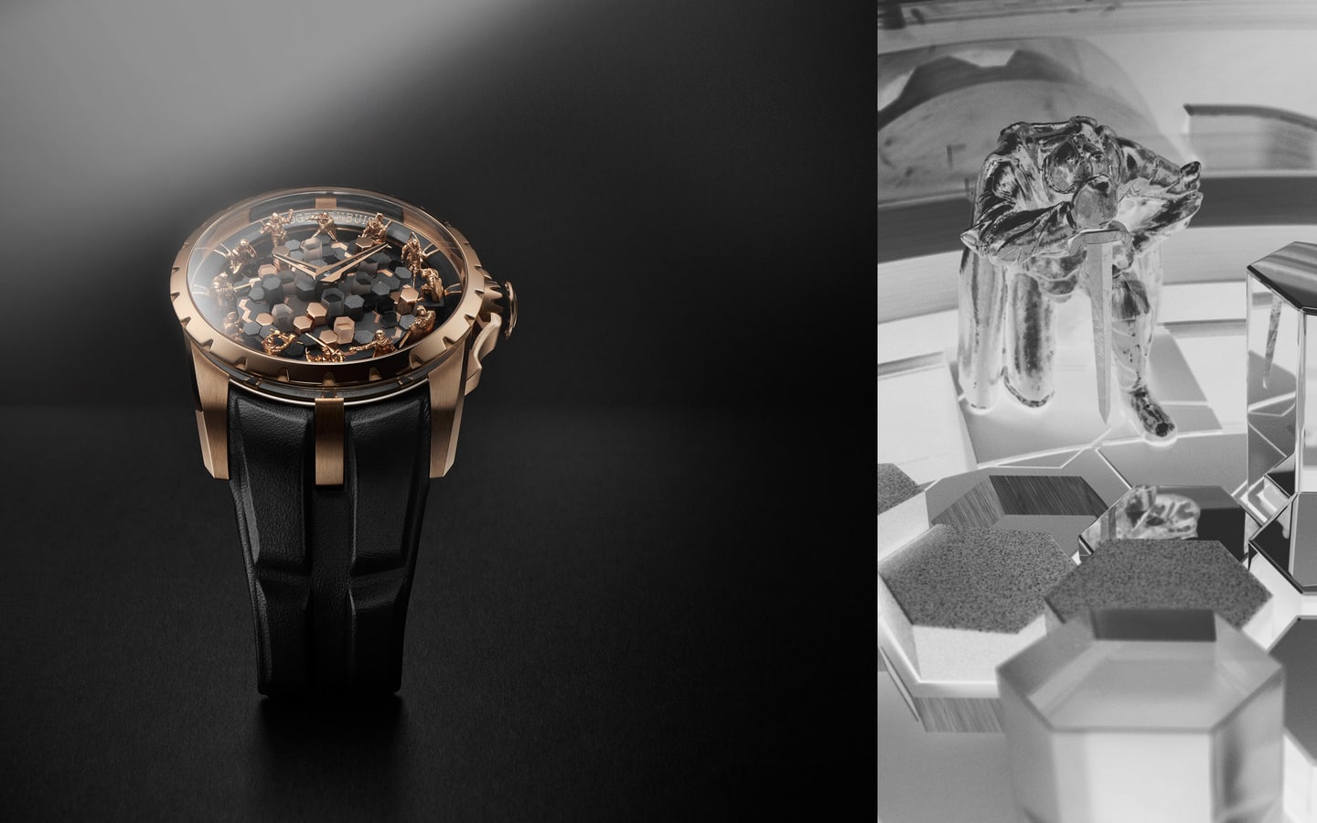 罗杰杜彼的作品表现力一直非常突出。从表壳形状和表盘设计,到其系列名称都有所体现。