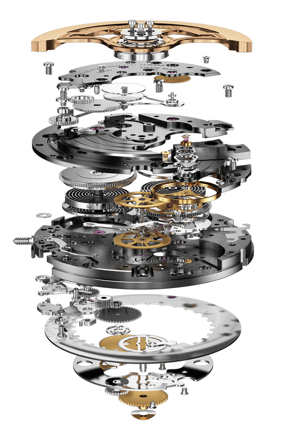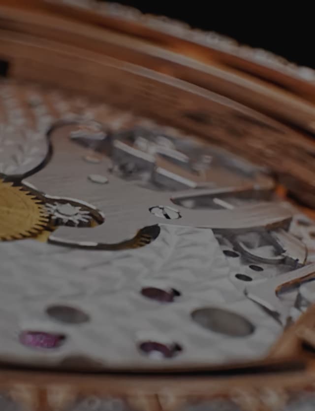• 主夹板经过喷砂处理,且覆有镀铑层 桥板饰有珍珠圆纹和日内瓦波纹,且覆有NAC涂层