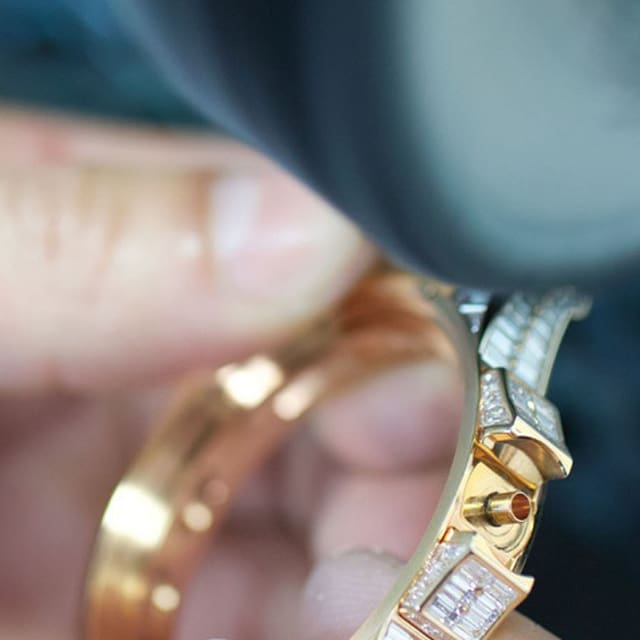 全面服务涉及时计的彻底整修,依据机芯的不同复杂度而需要几小时到几天的工作时间。 在此过程中,机芯将被全面拆卸开来,所有零件将获得清洁、上油,并且在必要处进行轴承润滑; 凡是受到磨损或毁坏的机芯和外部零件都会被替换更新。 机芯本身会得受到严谨的检测: 机械运作、振幅和设定等等装置都会被细心检查和调整,以符合Roger Dubuis罗杰杜彼对走时容差和技术规格的严苛要求。 经过彻底整修之后,您的Roger Dubuis罗杰杜彼时计将宛如新表,因为其表壳和表扣也都将经过打磨抛光,再度容光焕发。
