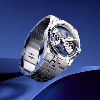 一款精钢材质的日历腕表,提供简洁而充满活力的时间读取方式,是罗杰杜彼逆跳时计家族的最新力作。自动上链RD840机芯集成了复杂的双逆跳模块,这是罗杰·杜彼先生于1989年共同申请专利的显示方式,同时14项手工润饰工艺彰显了日内瓦印记认证的严苛要求。多层表盘以“苍穹蓝”色调呈现,通过品牌富有表现力的语言,重新诠释了制表经典。