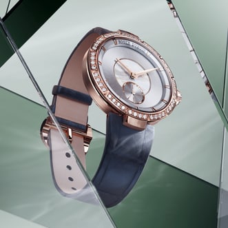 灵感源自薇薇安——那位将王者之剑Excalibur授予亚瑟,并塑造了其麾下最伟大英雄命运的传奇女性。这款36毫米玫瑰金杰作,被全然构思为一件珍宝。多层次表盘之上,不同深浅的灰色调与钻石、珍珠母贝交相辉映,呈现出对比鲜明的饰面与表面。如同女骑士的铠甲,每一种材质都诉说着力量、独立与坚定的信念。
