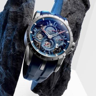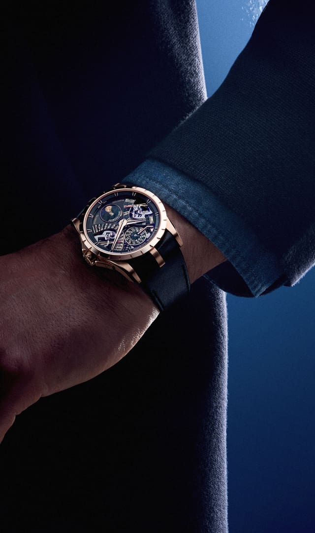 自罗杰杜彼Roger Dubuis高级制表创立之初,历法便是其不可或缺的一部分,将自然界昼夜与岁月的节律转幻为精密机械的运作。今年,品牌通过万年历、双逆跳显示与陀飞轮等复杂机制,探索四种独具特色的方式,以腕间时计捕捉地球之外那流动不息的天体运作之美。
