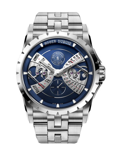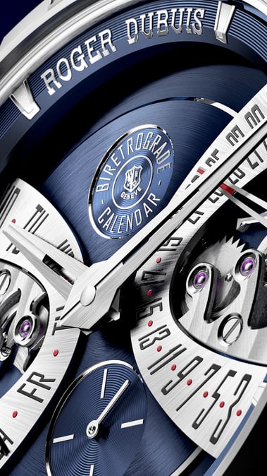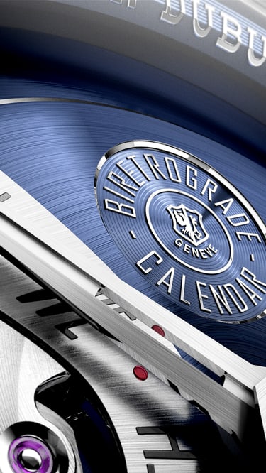 1989年,在品牌正式创立的六年前,罗杰·杜彼先生与合作伙伴共同申请了双逆跳显示专利:一种旨在让复杂制表工艺既易于理解又充满乐趣的机制。他与Jean-Marc Wiederrecht合作,从零开始重新设计了逆跳机制,螺旋弹簧取代片状弹簧,并重新构思了凸轮,同时赋予指针更高的运行精准度、稳定性和视觉清晰度。王者系列双逆跳日历腕表是“逆跳之家”的最新力作,这一创始标志从未停止演进。