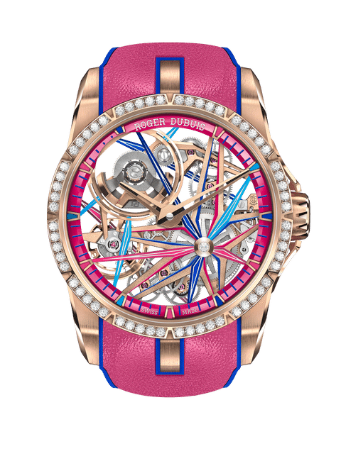 王者系列霓虹腕表受到艺术世界的启发,彰显了Roger Dubuis罗杰杜彼的创新能力。彩色的微型结构在机芯内展开,在白天像光线一般穿梭于繁复机械之间。此微型结构在紫外线照射下闪烁发光,犹如霓虹灯在双面雕塑中绽放光芒,展现出仅在特定环境下才能全面发挥的潜力。Roger Dubuis罗杰杜彼将艺术与创新融为一体,并称其为“艺术科技(Art Technologies)”,这使其日内瓦制表厂能够推出限量版的独创时计。此外,王者系列霓虹腕表也体现了Roger Dubuis在高级钟表世界的独创性设计以及其非凡的创作手法。