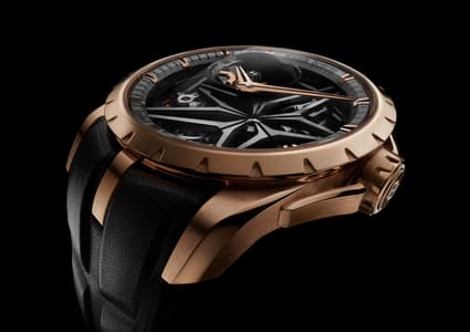 日内瓦Roger Dubuis罗杰杜彼制表厂精心打造出的镂空机芯是Excalibur王者系列独特表现力的精髓所在。