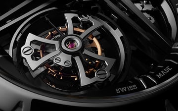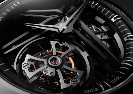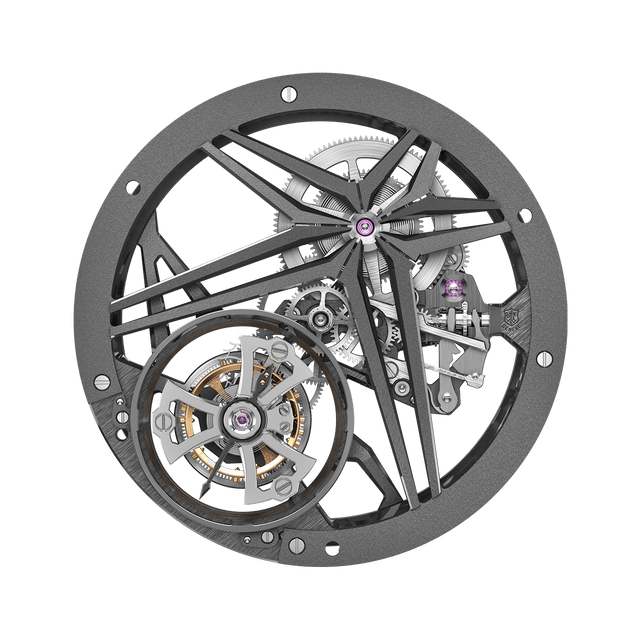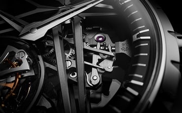 搭载 RD512SQ 手动上链机芯,拥有超高品牌辨识度,于细节处彰显罗杰杜彼 Roger Dubuis 非凡工艺和独特设计美感。它的特别之处不仅在于其所搭载的飞行陀飞轮,陀飞轮所安置的 7 点钟位置也是我们特有的设计。值得品鉴的还有从凯尔特十字架汲取灵感的上部分非磁性钴铬合金陀飞轮笼形框架,以及采用轻制钛金属制成的下部分陀飞轮笼形框架。