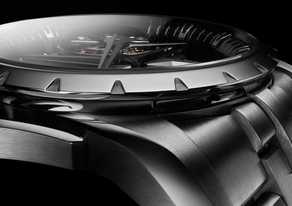 钛合金表壳,搭配覆有防反射涂层蓝宝石水晶玻璃表镜钛合金表圈 钛合金表冠 钛合金开放式底盖透视表背,搭配防反射涂层蓝宝石水晶玻璃镜面